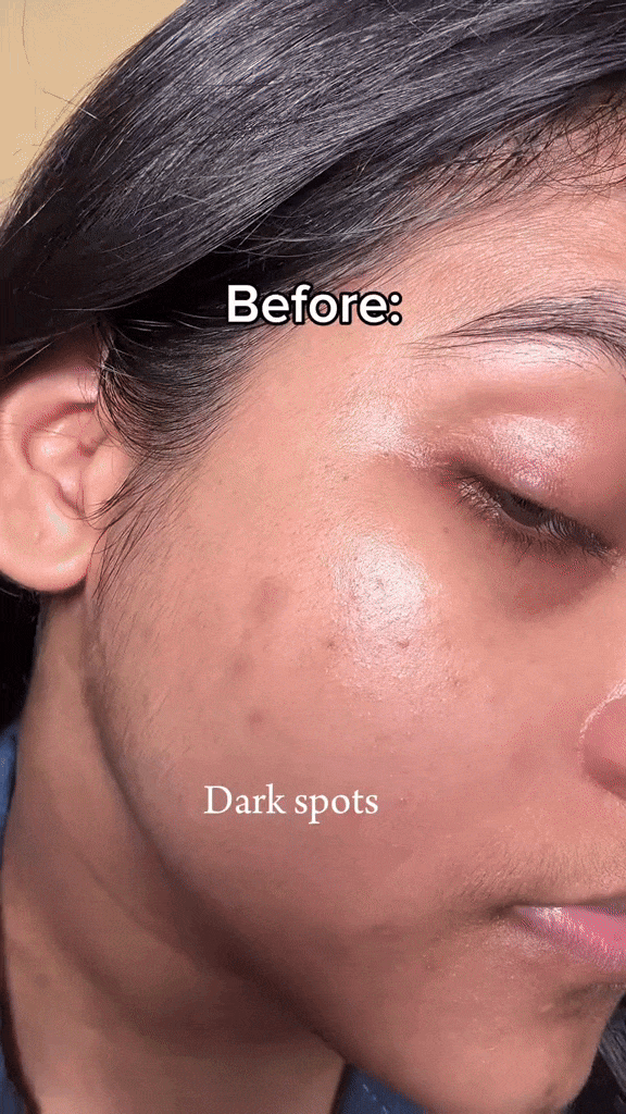 Old dark spots from sun and acne finally started to fade after a few weeks. The biggest difference I noticed was my skin tone looking more even without makeup. – Rohini M., Bangalore ★★★★★